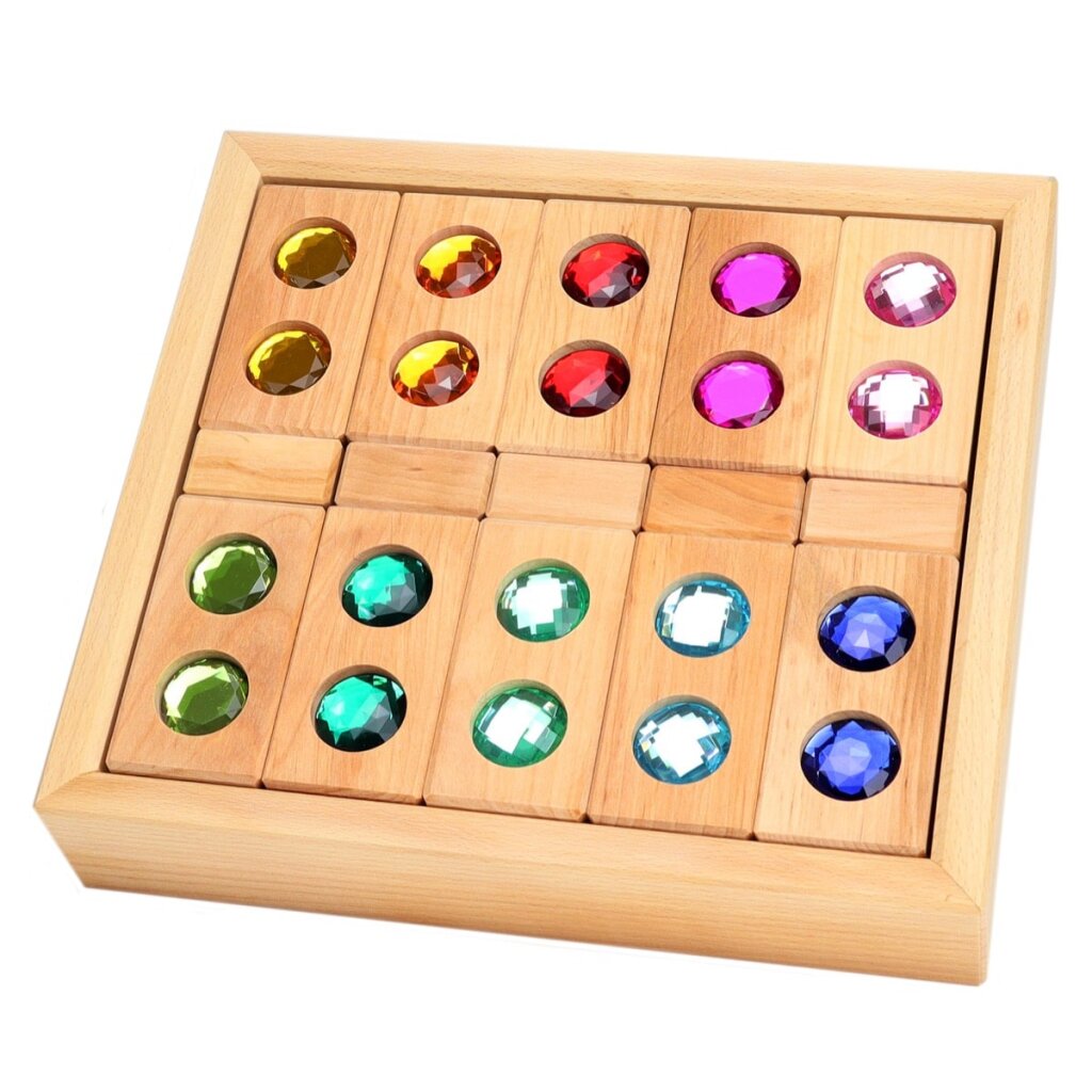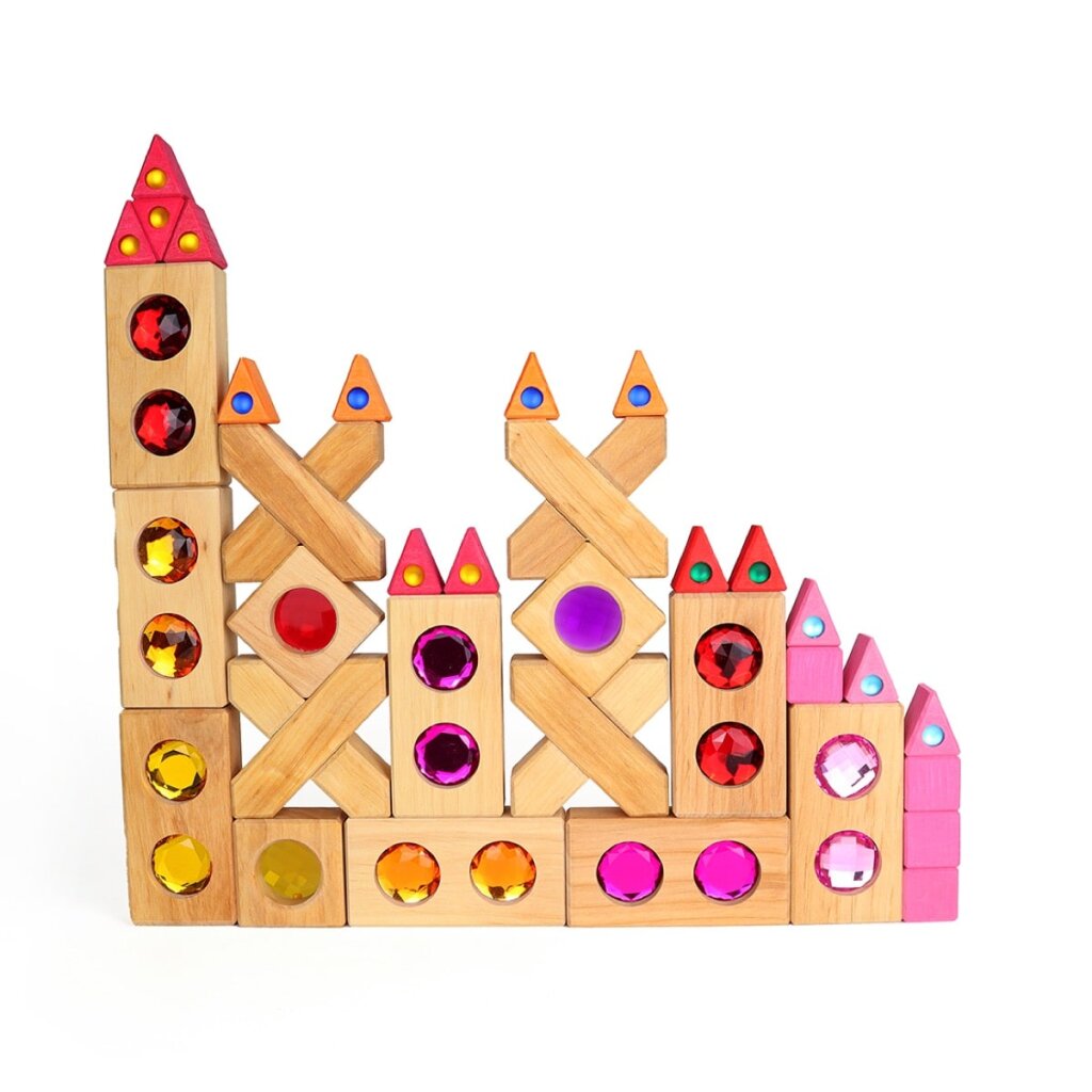 Die kleine Farbstraße von Bauspiel besteht aus 20 Quadern mit leuchtenden Funkelsteinen in 10 Farben sowie 5 transparenten Facettenklötzen mit spannenden Durchblick-Effekten. Perfekt für Muster, Symmetrieübungen und ein kleines Farbmemory – eine vielseitige Kombinationspackung für kreatives Spielen!