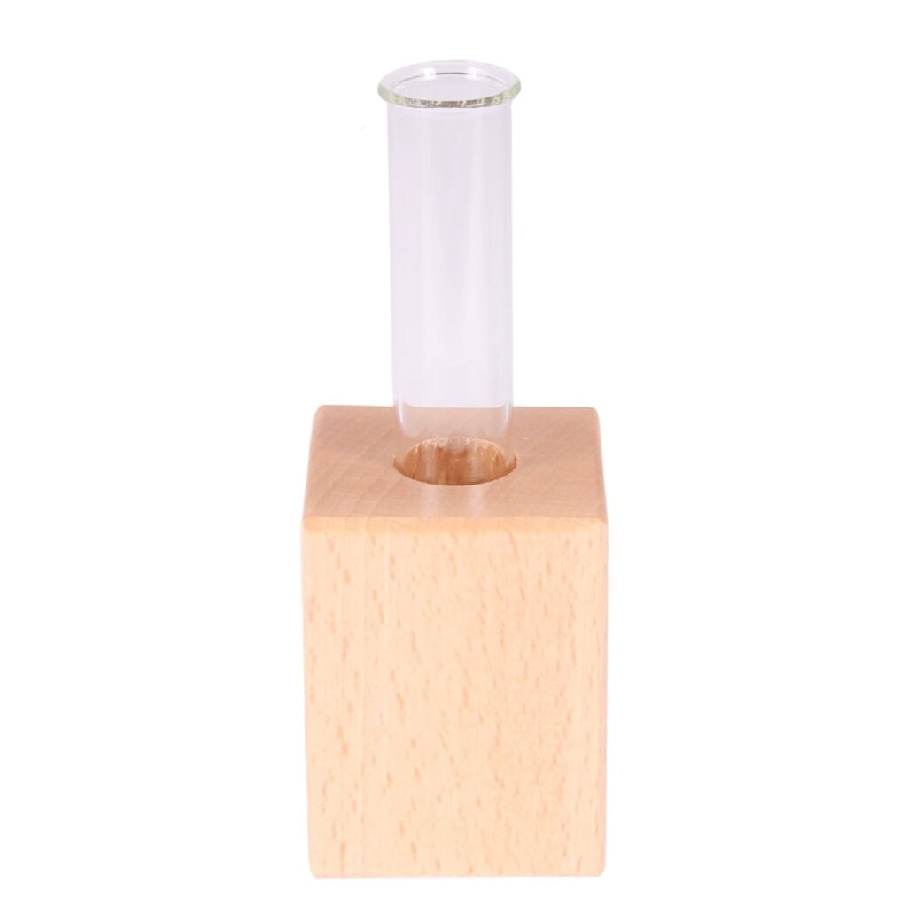 Gefertigt aus hochwertigem Buchenholz, überzeugt die kleine Vase durch ihr schlichtes Design und die warme Holzoptik. Das integrierte Reagenzglas bietet Platz für einzelne Blumen oder kleine Trockenarrangements.