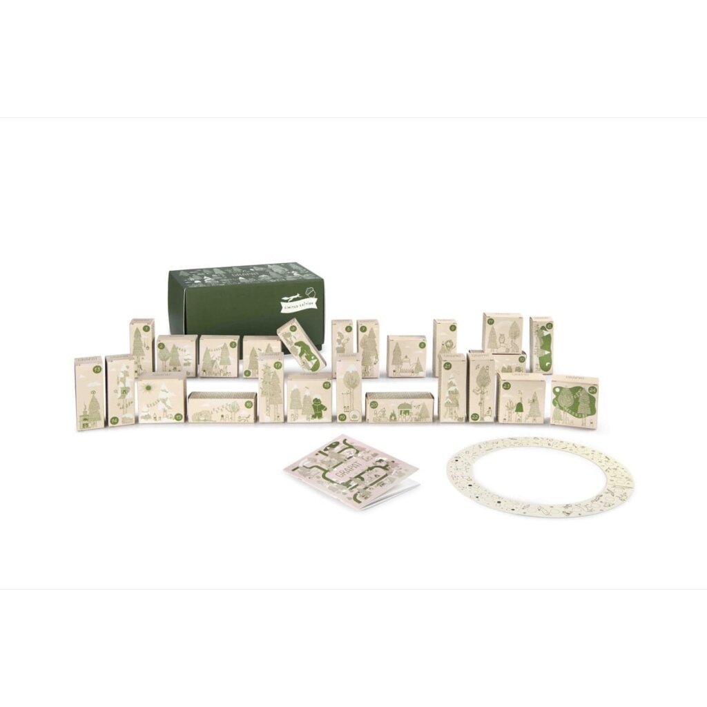 Der Adventskalender 2025 Grapat ist eine exklusive, limitierte Edition voller liebevoll gestalteter Überraschungen. Mehr als 180 Teile aus Holz, Stoff und Naturmaterialien laden zu kreativem Spiel, ruhigen Ritualen und zauberhaften Wintermomenten ein. Jeder Tag enthüllt ein neues kleines Wunder – inspiriert von Mineral, Pflanze, Tier und Mensch.