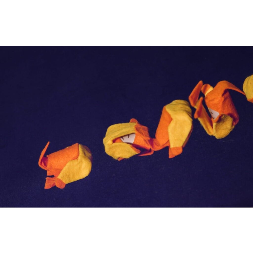 Mia baut mit Decken und einem Holzbrett eine kleine Rutsche. Oben sitzt der Purzel Zwerg von Kraul und winkt. „Los geht’s!“, ruft Mia und stupst ihn an. Der Zwerg rollt los, überschlägt sich lachend und landet sicher auf dem Teppich. „Noch einmal!“, ruft Mia begeistert. So purzelt der Zwerg immer wieder den Hügel hinab – selbst wenn Mia krank im Bett liegt, sorgt er mit seinen Purzelbäumen für gute Laune und fröhliche Stunden.