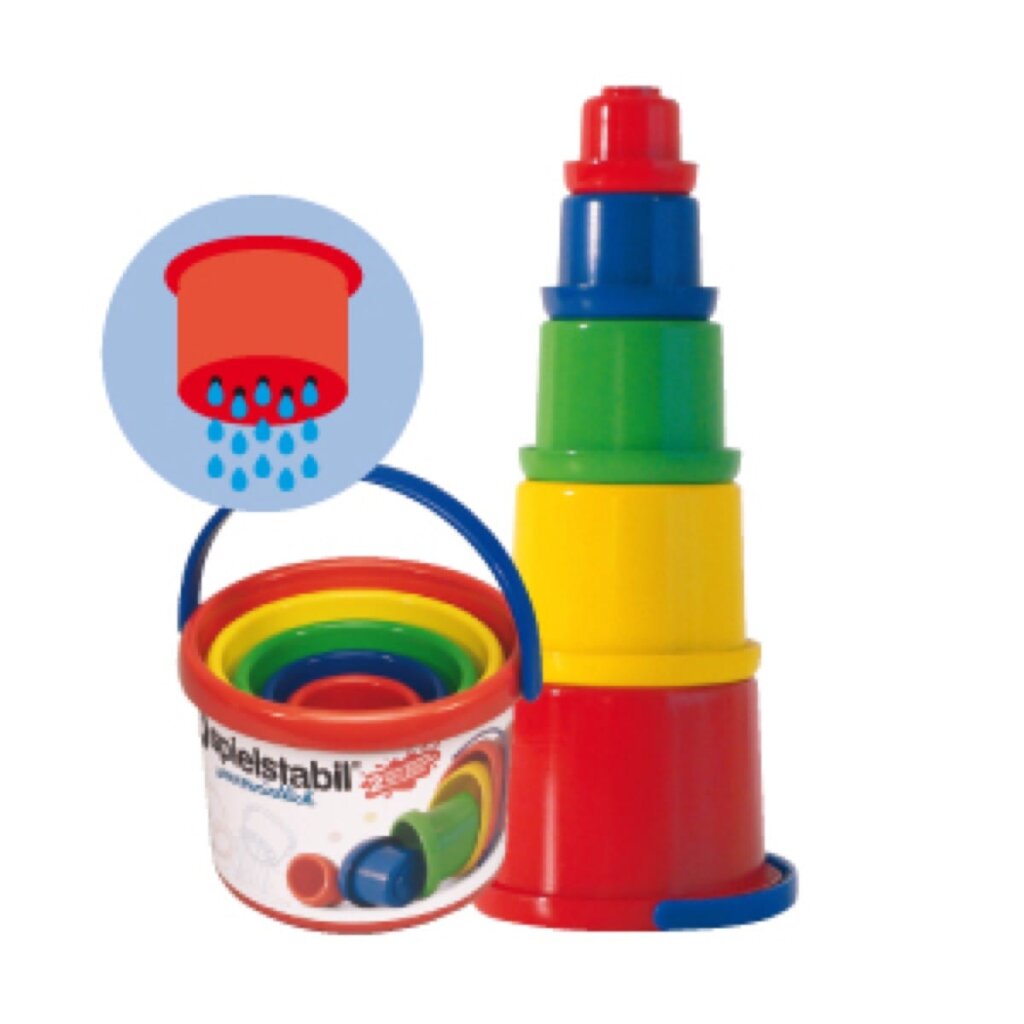 Dieses farbenfrohe Stapelbecher-Set begeistert kleine Baumeister mit vielen Spielmöglichkeiten. Perfekt zum Stapeln, Ineinanderstecken oder für Wasserspaß am Strand.